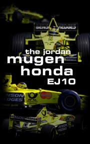 The Jordan Mugen-Honda EJ10, based on the work and concepts of Jordan's most successful car to date - the Jordan Mugen-Honda 199 - is a notable step forward from its predecessor. This is due primarily to the re-structuring of working practices introduced to the drawing office in 1998 becoming fully operational for the design of this year's car. The result has been more efficient use of expertise and resources, with perhaps the most notable benefit being that work on the EJ10 began three months earlier than it did for the 1999 car. |